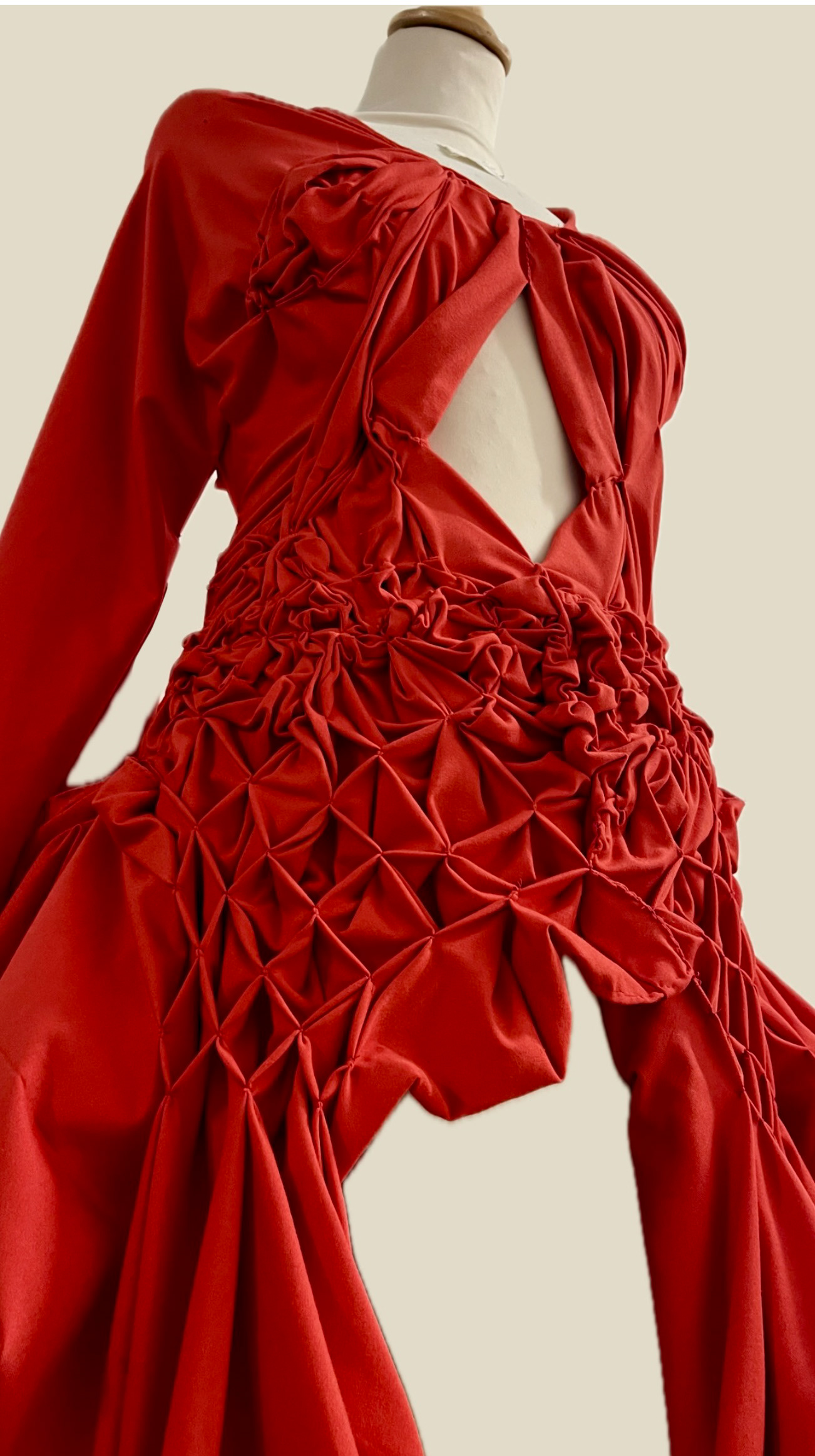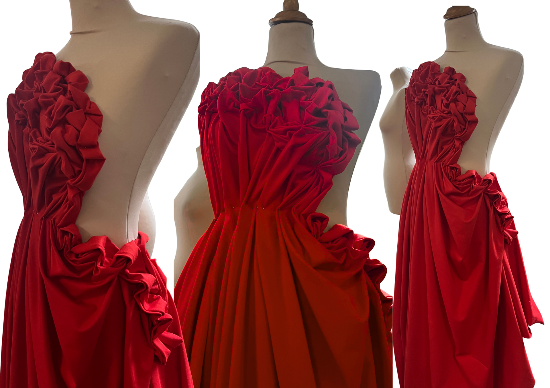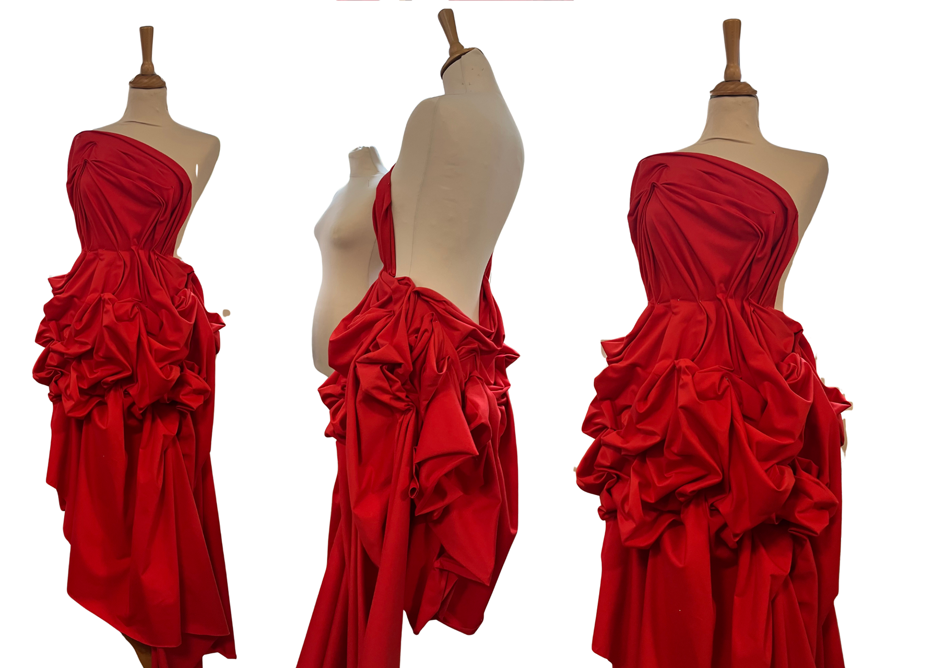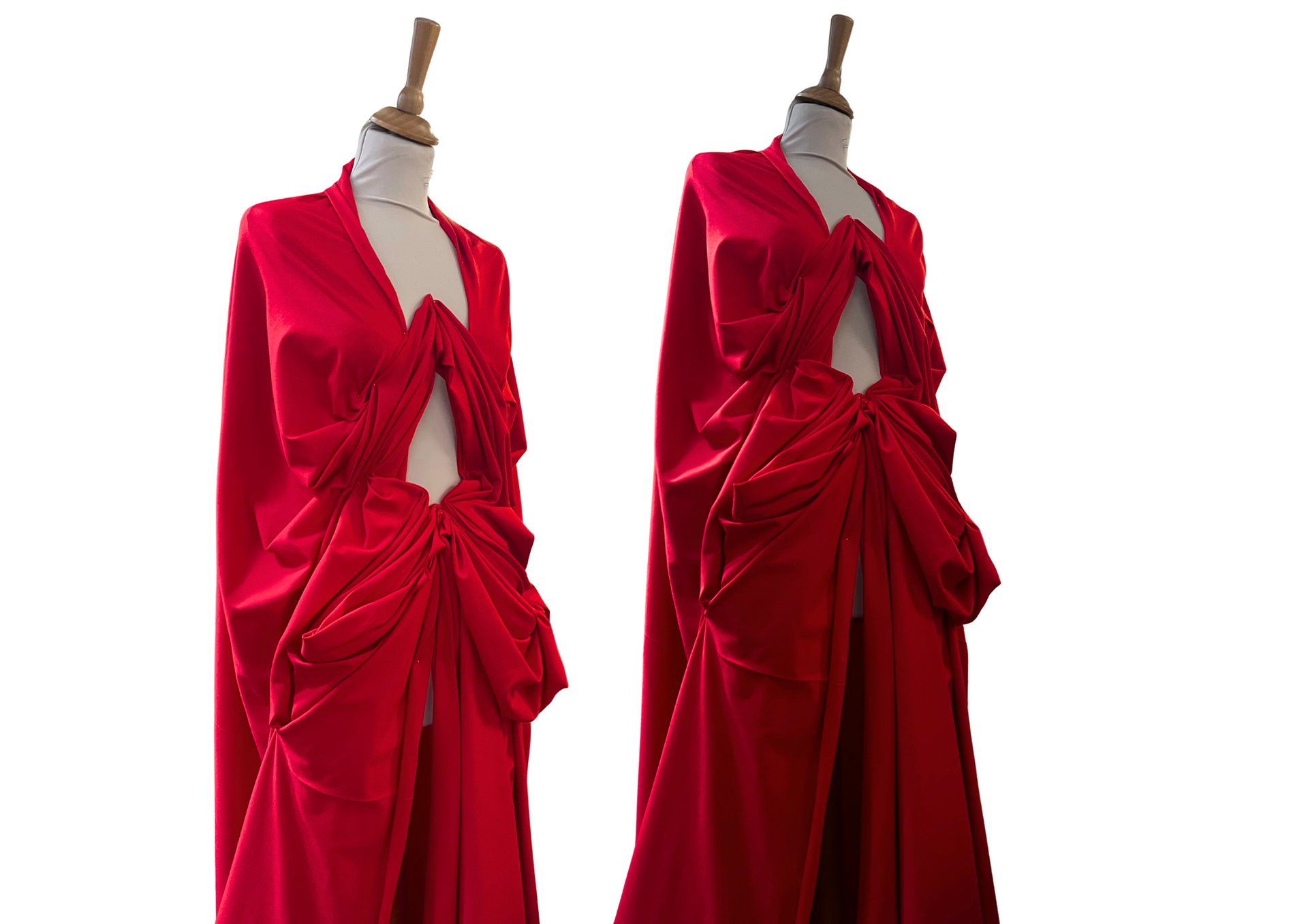 In this creative experiment, I explored the poetic tension between control and freedom using only 3 meters of jersey fabric. The rule was simple — just two cuts, no patterns, no machines, only hand-stitching and intuition. I let the material guide me, following its weight, stretch, and flow to reveal an unexpected silhouette born from spontaneity The challenge became a dialogue between fabric and form — how elegance can emerge from limitation, and how a single piece of jersey can transform into something sculptural, sensual, and alive A raw exploration of movement, texture, and the quiet power of simplicity