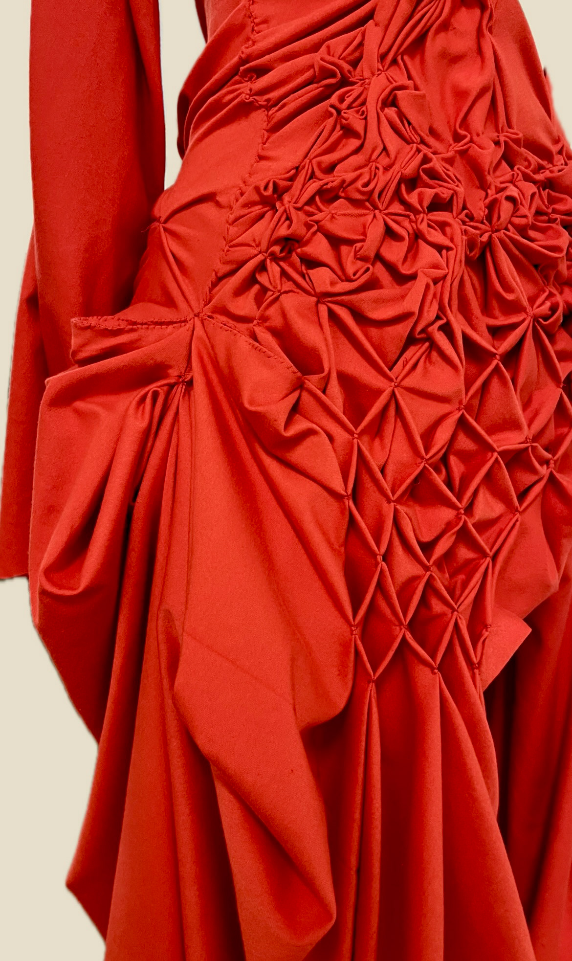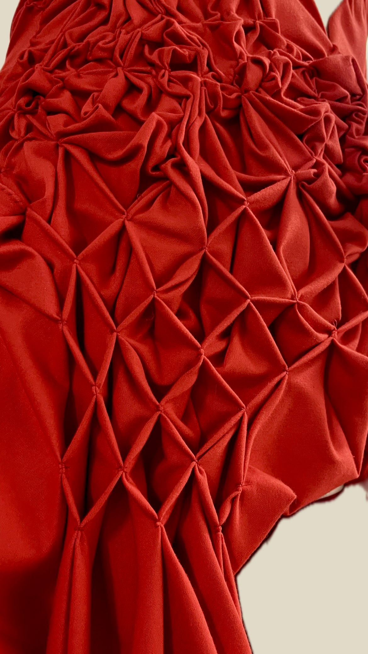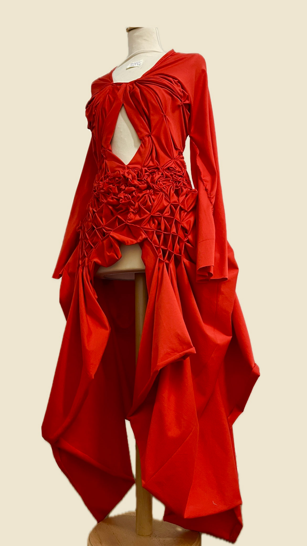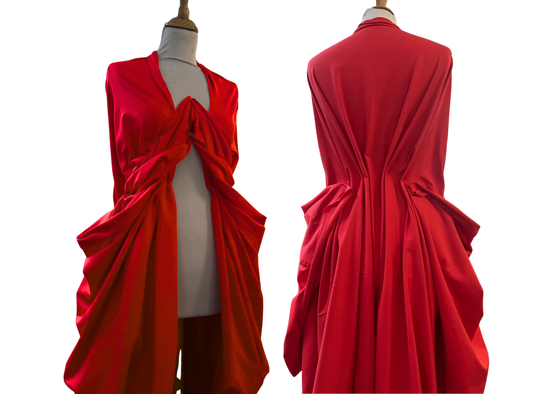 In this creative experiment, I explored the poetic tension between control and freedom using only 3 meters of jersey fabric. The rule was simple — just two cuts, no patterns, no machines, only hand-stitching and intuition. I let the material guide me, following its weight, stretch, and flow to reveal an unexpected silhouette born from spontaneity The challenge became a dialogue between fabric and form — how elegance can emerge from limitation, and how a single piece of jersey can transform into something sculptural, sensual, and alive A raw exploration of movement, texture, and the quiet power of simplicity