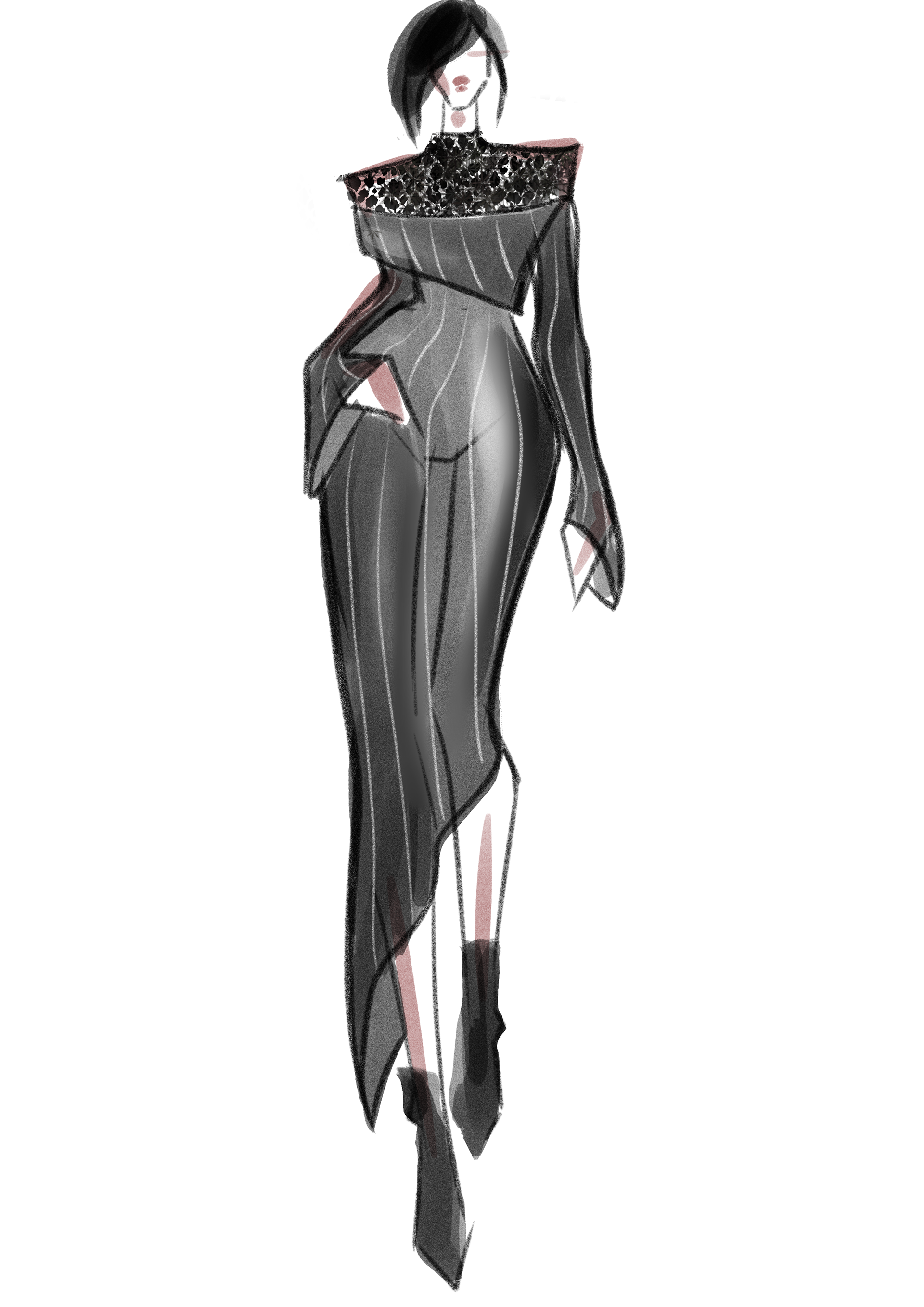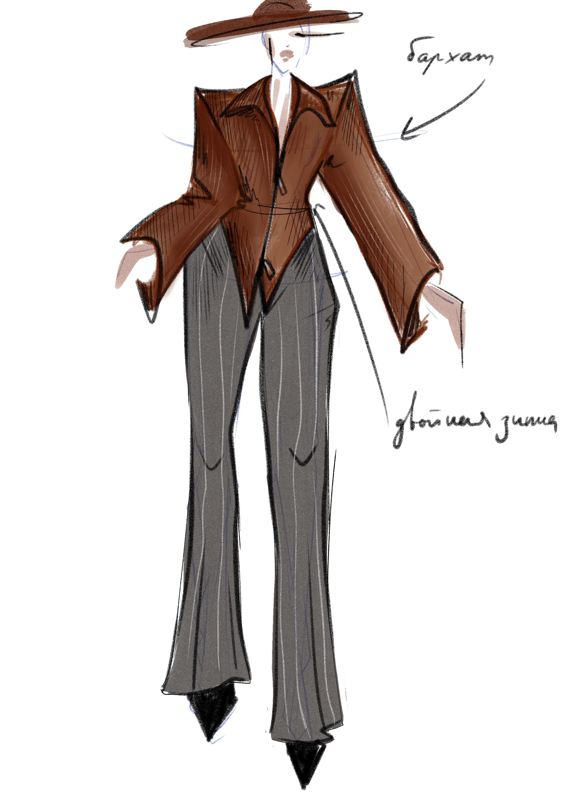 Ready-to-wear collection for the Chapurin brand, inspired by the materials provided and the brand’s distinct aesthetic. Working with rich textures such as wool, velvet, corduroy, and lace, I explored the dialogue between structure and fluidity, creating garments that embody elegance, sophistication, and subtle sensuality. The collection highlights tactile contrasts and refined details, reflecting Chapurin’s signature style while bringing a contemporary vision to life. Remarkably, the entire collection was developed and executed in just two days, demonstrating both creative agility and a deep understanding of the brand’s identity
