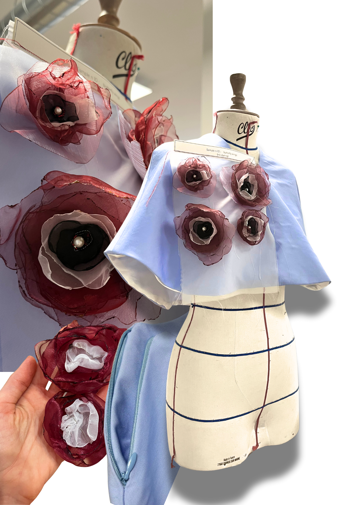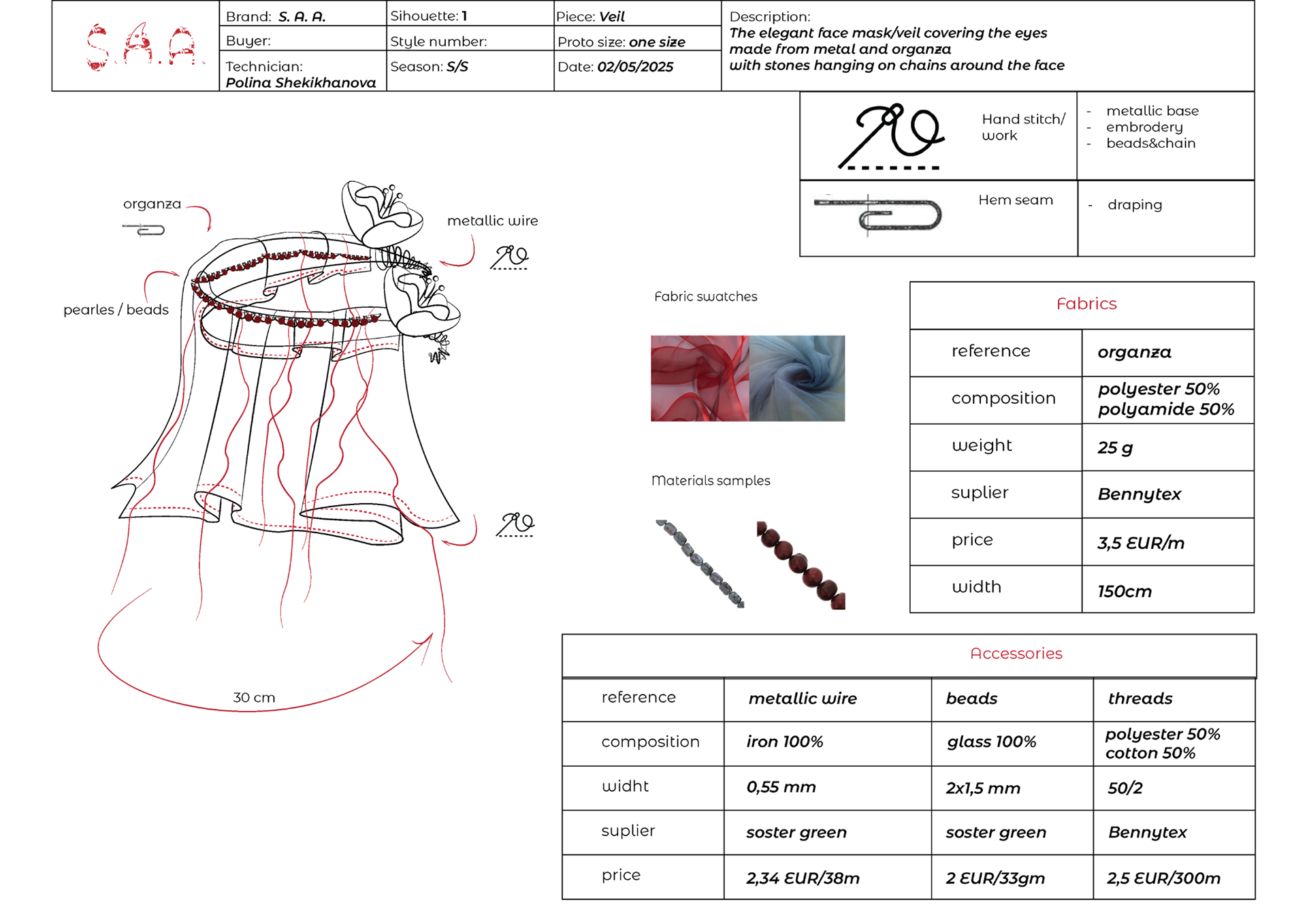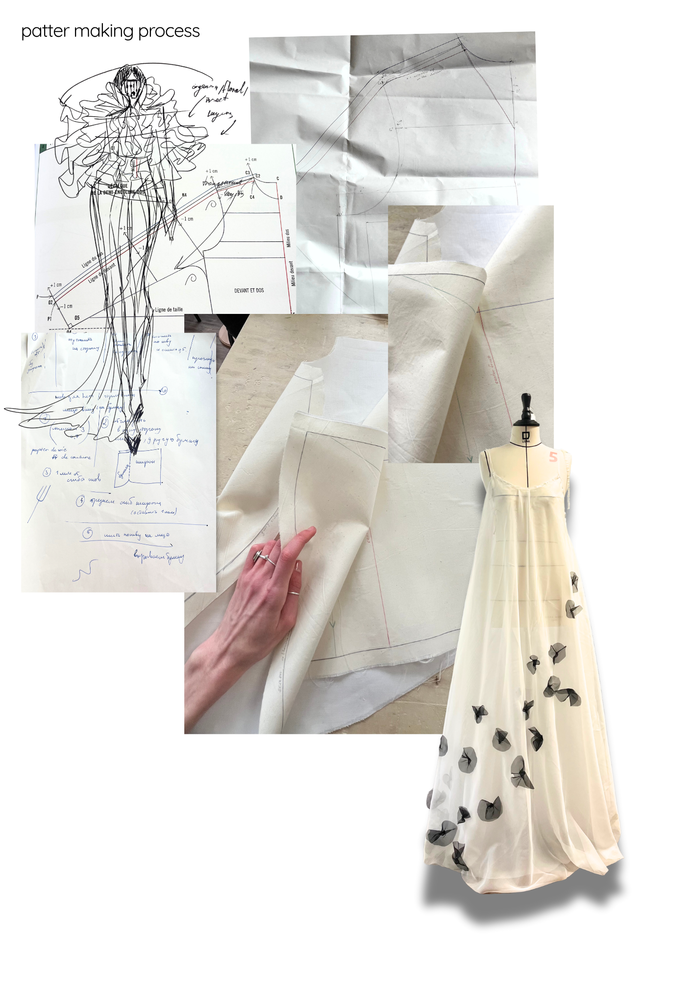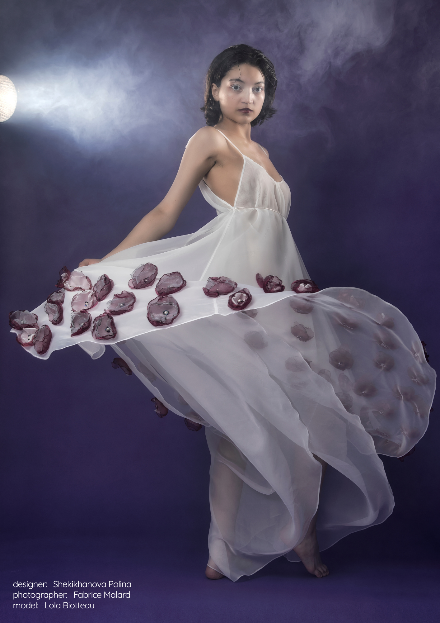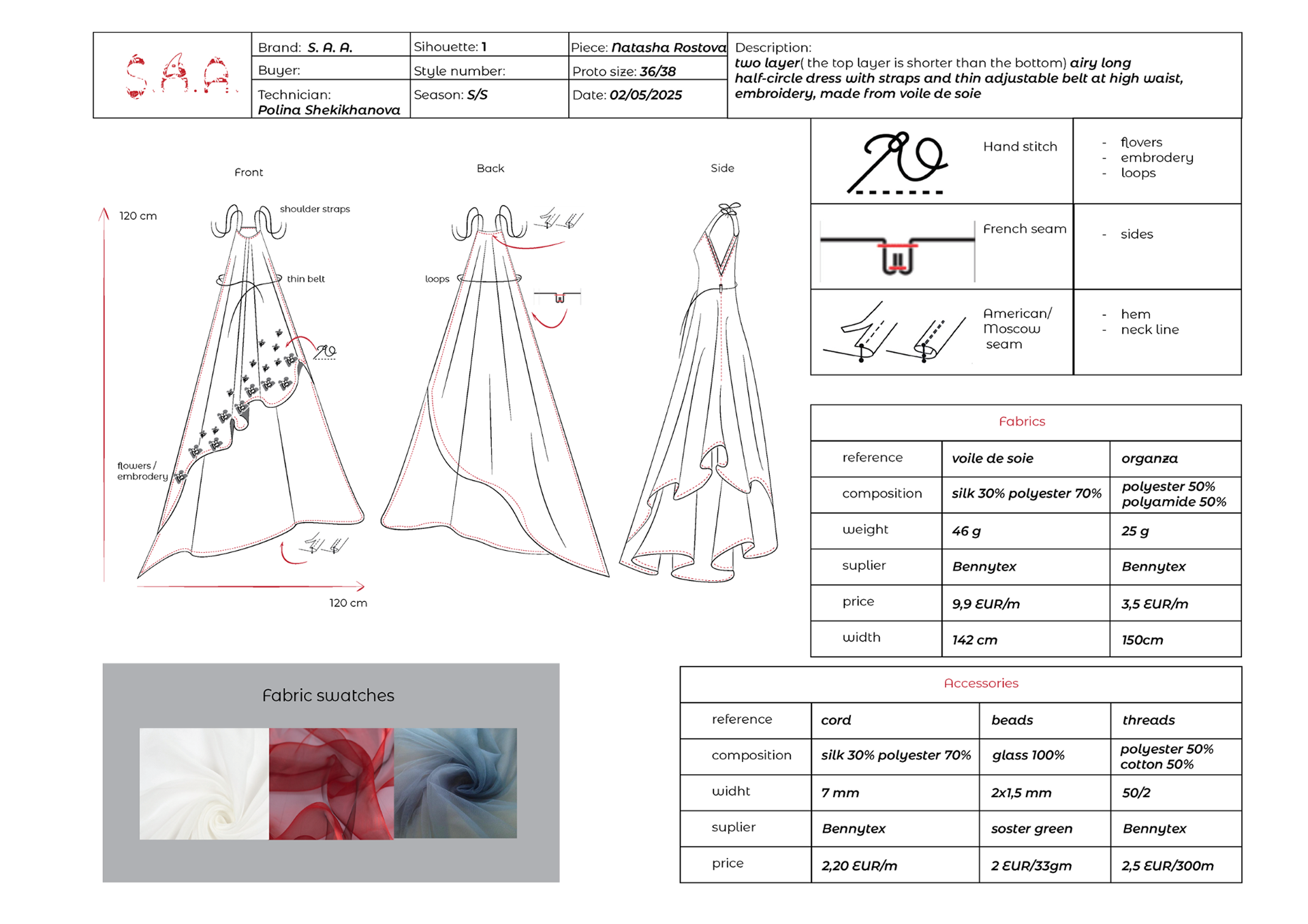 A visual exploration of nostalgia, memory, and emotional connection This look features a layered transparent dress paired with a sculptural cape and accessories — forming a poetic dialogue between lightness and structure The project evolved into a complete collection of garments and accessories united by one idea: the meaning of “sentimental” expressed through feelings of remembrance, spiritual and family ties Inspired by the vibrant symbolism of Mexican culture — particularly El Día de los Muertos — and the universal language of color, form, and nature, the collection reinterprets traditional motifs through a modern lens Airy silhouettes, delicate layering, and tactile fabrics like organza, poplin, and satin capture the ephemeral beauty of memory — where the past meets the present in movement and emotion